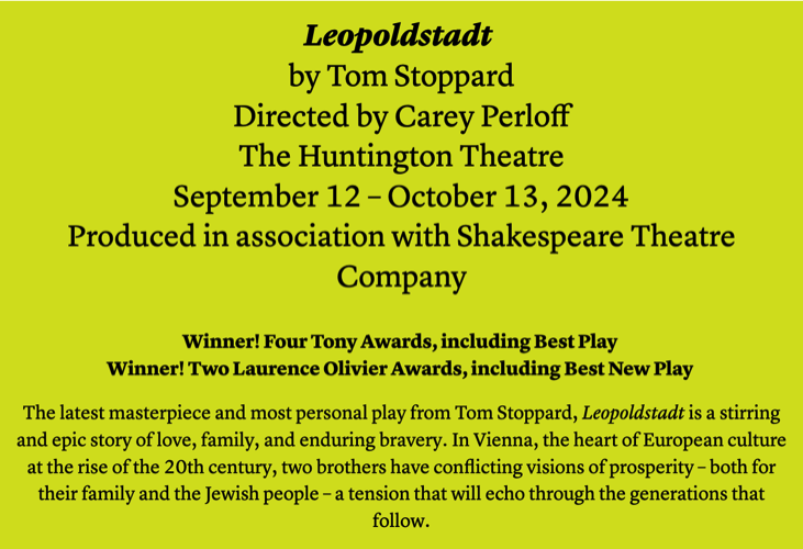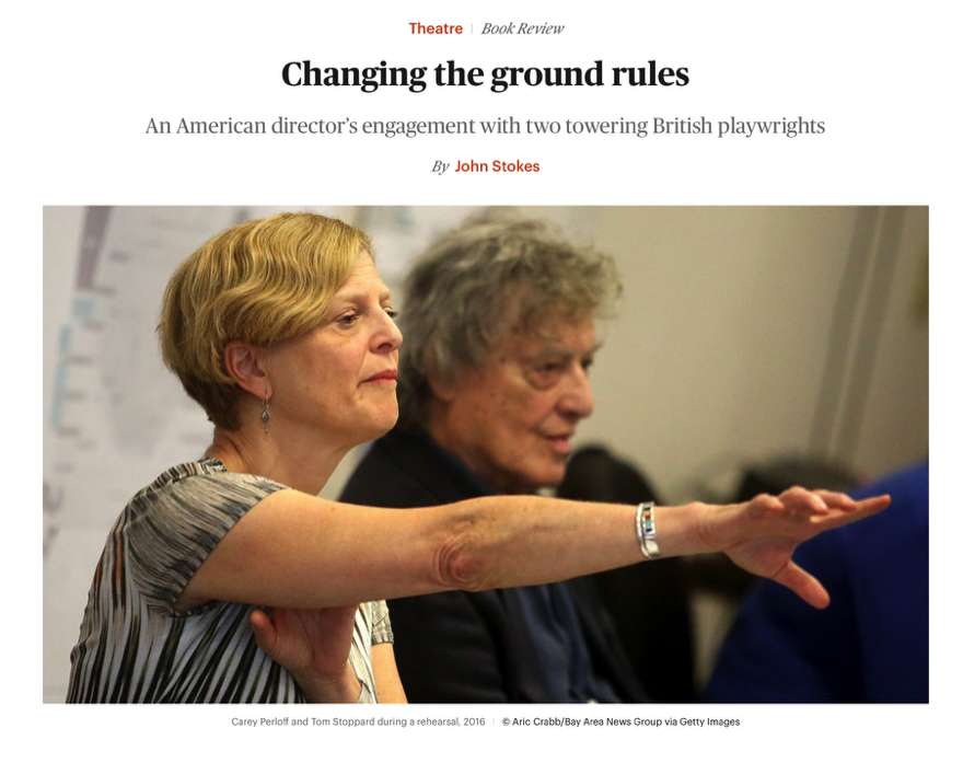 The October 6 review in The New Yorker of Tom Stoppard's play Leopoldstadt cites Carey Perloff's new book Pinter and Stoppard: A Director's View