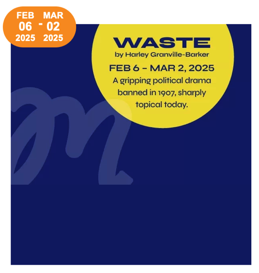 Marin Theatre Company will launch 2025 with a fresh take on a rarely seen century-old political play, Waste (February 6 – March 2, 2025). This compelling work was written in 1906 by Harley Granville-Barker, an English actor, director, playwright, and critic, who came to fame performing and then directing the early works of George Bernard Shaw, eventually authoring The Voysey Inheritance, considered a masterpiece of the Edwardian stage. That highly regarded hit was followed by Waste, which was banned due to its shocking topic of abortion and politics, finally staged for the first time in 1927. In Waste, an ambitious politician’s career is wrecked over his illicit affair with a woman, who has died after a botched abortion. Rather than showing sympathy or outrage for the female victim, the work cynically focuses on the politician and his colleagues, who scramble to salvage his reputation. In a recent U.K. revival, British Theatre lauded Waste for its “crackling dialogue” calling it “Extraordinary. By some distance the best production to grace a National Theatre stage since Rufus Norris took the reins.” Director, playwright, producer, author, and educator Carey Perloff, artistic director emerita of American Conservatory Theater in San Francisco, is set to direct, and Marin Theatre Artistic Director Lance Gardner will return to the stage as the politician under fire.